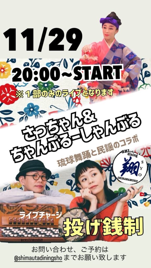 2025 11/29(土)20:00琉球舞踊 伊佐幸子 × CHANPRU-CHAMBRE 島唄Dining翔(十三)