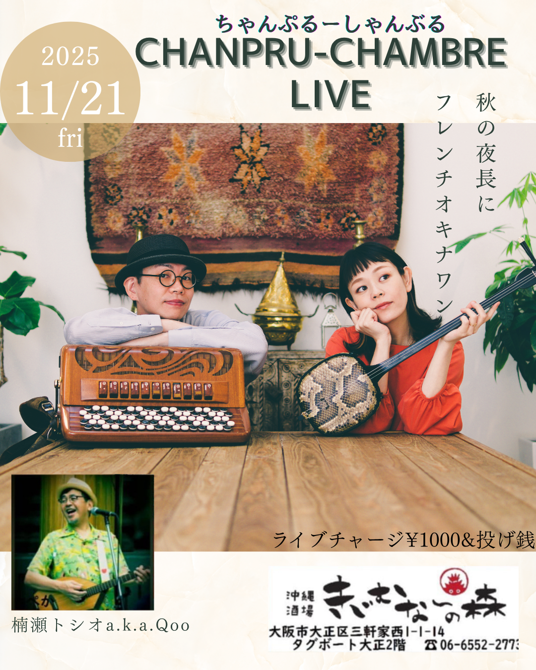 2025 11/21(金)19:30CHANPRU-CHAMBREライブ with 楠瀬トシオ きじむな~の森(大阪大正区)