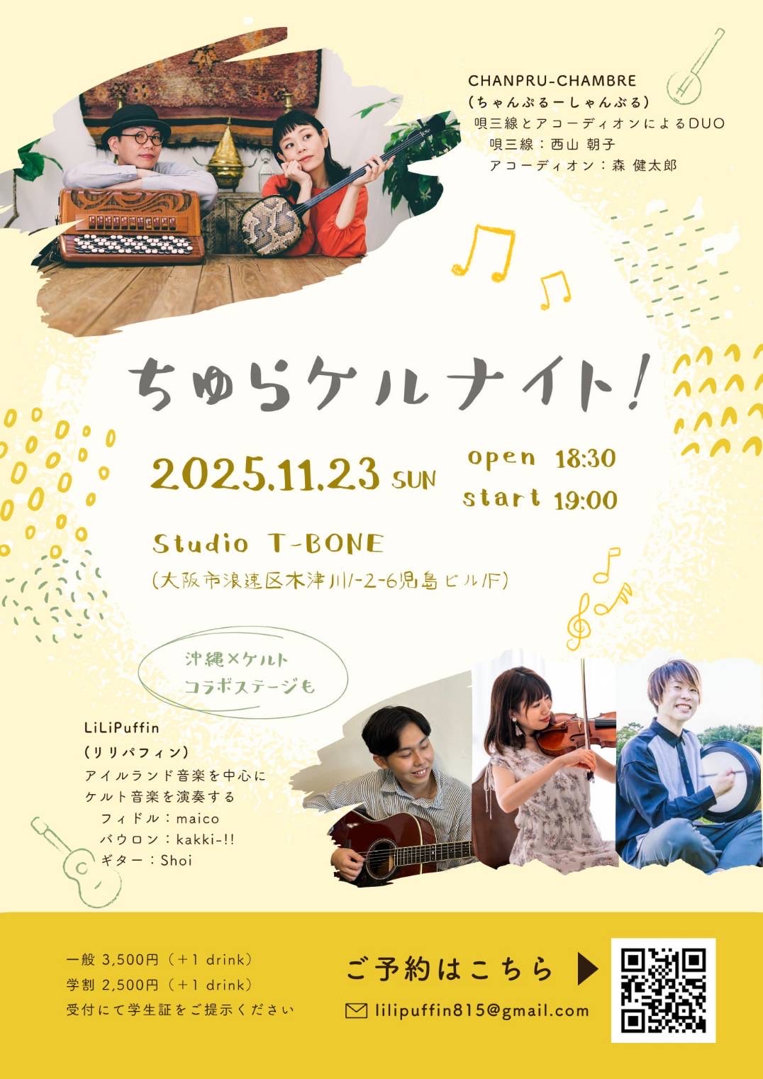 2025 11/23(日)19:00ちゅらケルナイト!LiLiPuffin & CHANPRU-CHAMBRE STUDIO T-BORN(大阪大正区)